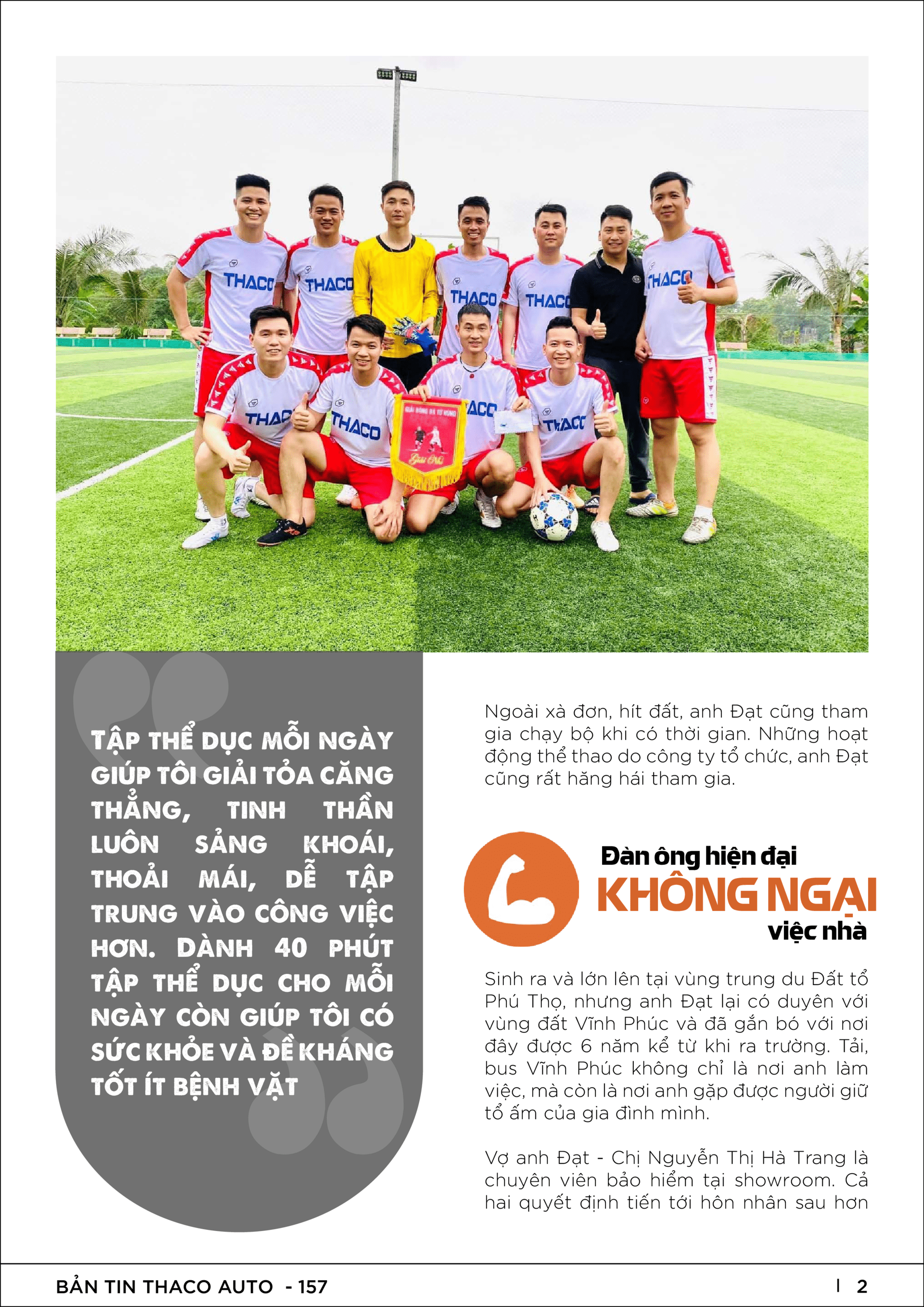 Kính gửi Ban Lãnh đạo, CBNV THACO AUTO ấn phẩm bản tin nội bộ số 157 với các nội dung nổi bật: Đàn ông hiện đại, không ngại việc nhà; Tại sao nên tiêm vaccine phòng Covid-19?